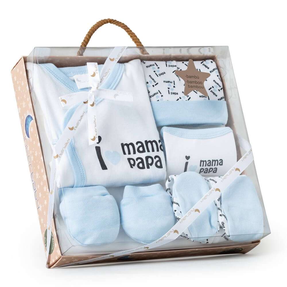 5-teiliges Baby-Erstausstattungs-Set „Mama & Papa“ (Blau)