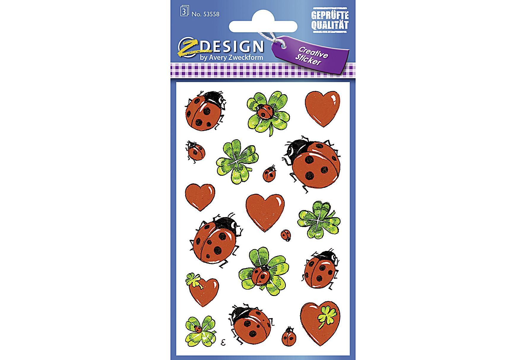 AVERY ZWECKFORM Sticker 53558 Marienkäfer mit Klee 3 BogenrnLieferumfang: 10 VPE