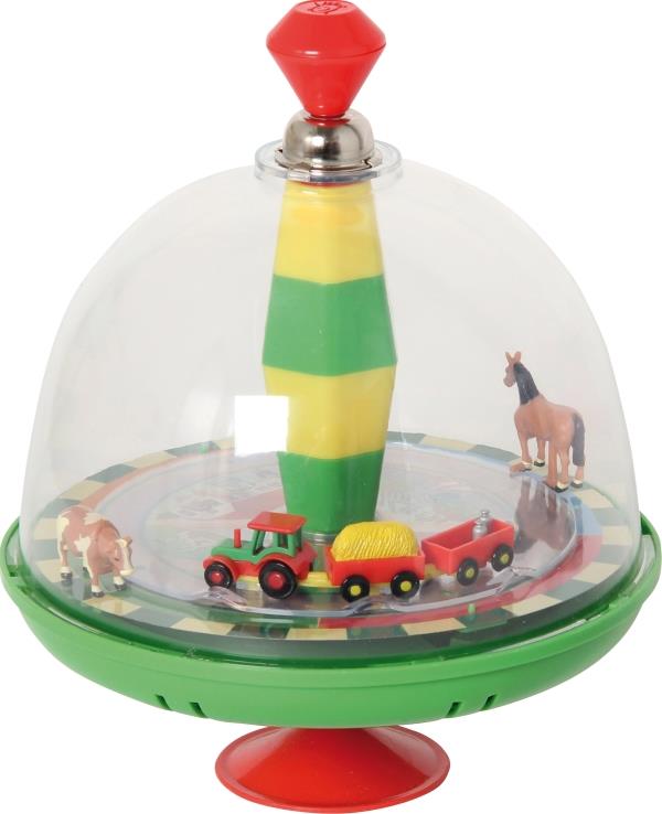 Bauernhofkreisel mit kreisendem Traktorgespann, sich bewegenden Tieren und realistischen Geräuschen. Batterien inklusive (2 AA 1,5 V). Ab 18 Monaten.