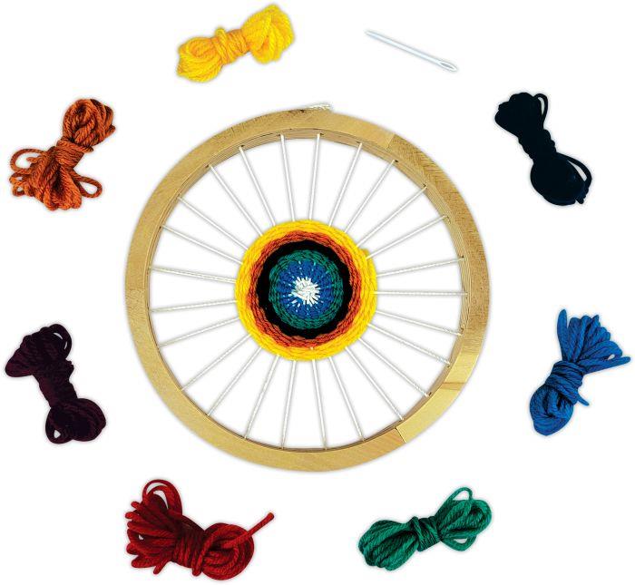 Creathek Webrahmen rund, aus Holz. Inklusive 2 Webnadeln sowie Webfäden in 7 verschiedenen Farben. Rot, Orange, Gelb, Grün, Blau, Dunkelblau und Dunkelrot. Die Webfäden sind aus dem Material Terylene. Einfache Handhabung. Anders als beim Schulwebrahmen, ziehen sich die Ergebnisse nicht zusammen. Ob kleine Decken oder Teppiche, hier sind der Kreativität keine Grenzen gesetzt. Für Kinder ab 5 Jahren. Durchmesser ca. #18 cm.