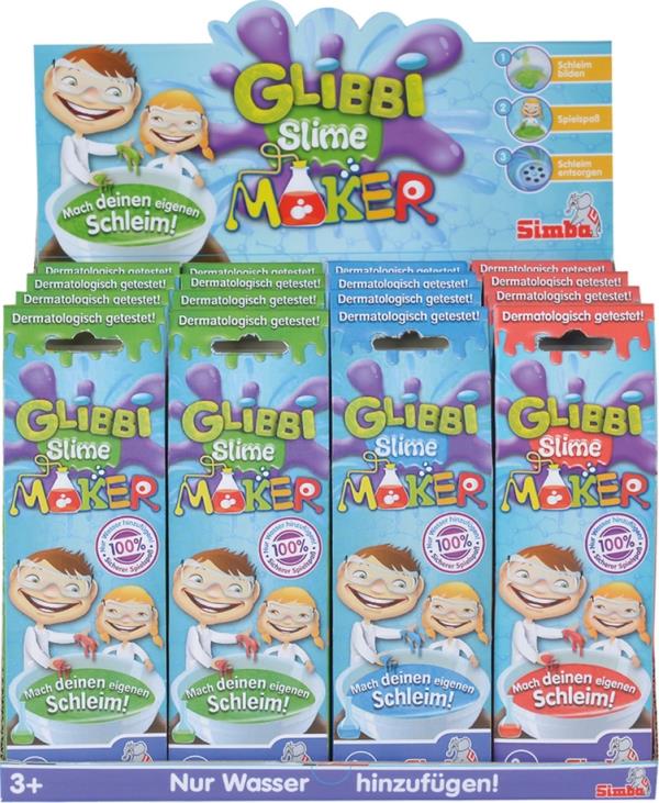 Mit Glibbi Slime Maker könnt ihr euch herrlichen Glibbi Schleim in drei tollen Farben zum Spielen und Herumexperimentieren zaubern. Einfach Glibbi Pulver in das Wasser einrühren und im Nu entsteht der tolle Glibbi Schleim und der Spielspaß für Groß und Klein kann beginnen. Den Schleim nach dem Spielen mit Wasser verdünnen und in den Abfluss gießen. Glibbi Slime Maker ist in den Farben Grün, Rot und Blau erhältlich und dermatologisch getestet. Für Kinder ab 3 Jahren geeignet.
