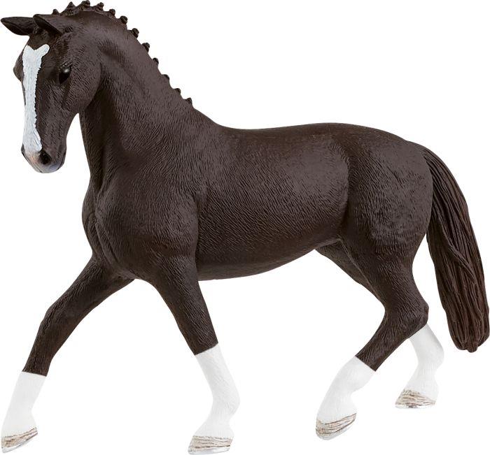 Die Hannoveraner Stute Rappe von Schleich® Horse Club hat elegante, weiße Abzeichen an allen vier Beinen.