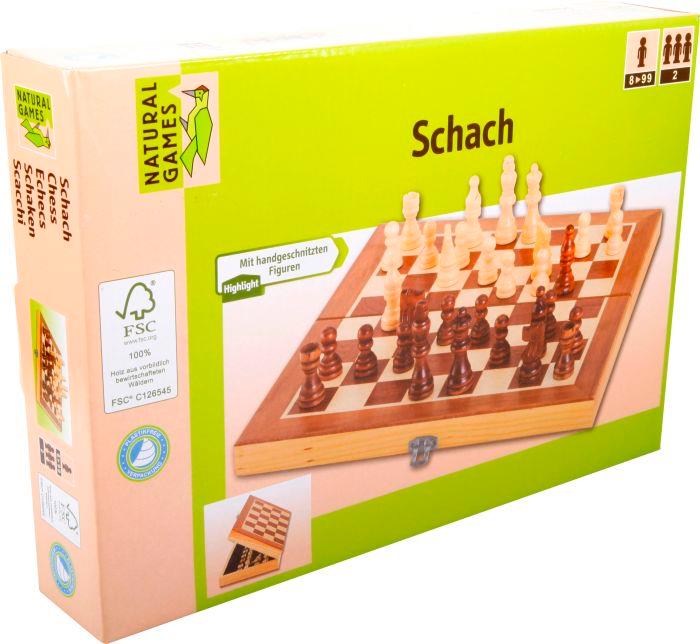 Natural Games Schachkassette ist ein klassisches Strategiespiel für zwei Spieler. Mit handgeschnitzten Schachfiguren. Inklusive Spielanleitung. Maße ca. 29x29x2,2 cm. Für Kinder ab 8 Jahren.