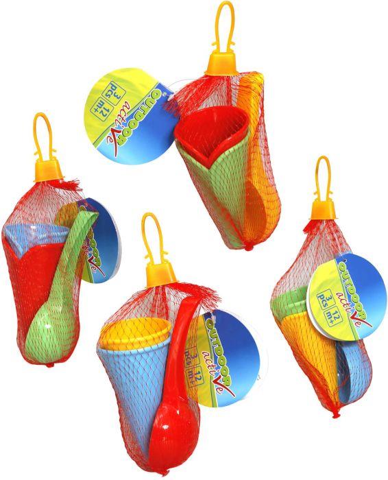 Outdoor active Eiscreme-Set im Netz, 3-teilig, 4-fach sortiert. Bestehend aus 2 Eistüten und 1 Eislöffel. Aus Kunststoff. Maße: 8x6x13,5cm. Für Kinder ab 1 Jahr.