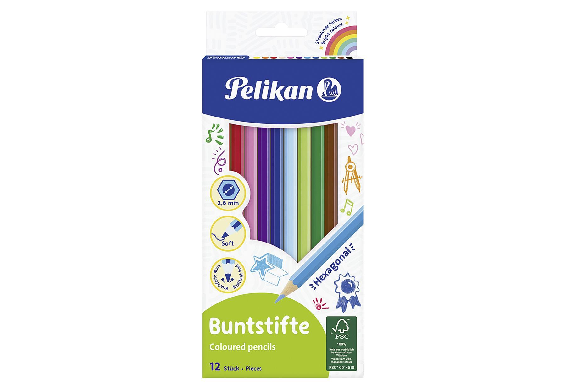 PELIKAN Farbstifte BS12L sechseckig 12er KartonetuirnLieferumfang: 10 VPE