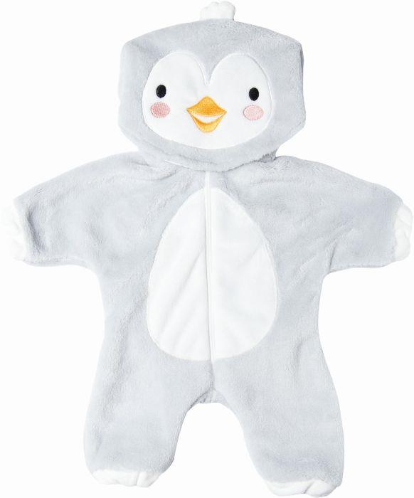 Im Puppen-Einteiler “Baby-Pinguin“ sehen Puppen nicht nur besonders niedlich aus, sondern sind darin auch super kuschelig eingepackt. Der weiche Plüsch-Overall ist von innen wie außen flauschig und hält die Puppe bei Wind und Wetter warm. Das fröhliche Pinguin-Gesicht auf der Kapuze sorgt auch bei tristem Wetter für allerbeste Laune. Durch seinen leichtgängigen Reißverschluss und die elastischen Bündchen an Ärmeln und Beinen lässt sich der Overall kinderleicht an- und ausziehen. Der Einteiler passt den meisten marktgängigen Puppen der Größe 35-45 cm. Er ist auch in einer weiteren Ausführung für Puppengröße 28-35 cm (Art.-Nr. 1198) erhältlich. Der Artikel wird auf einem Holzkleiderbügel geliefert