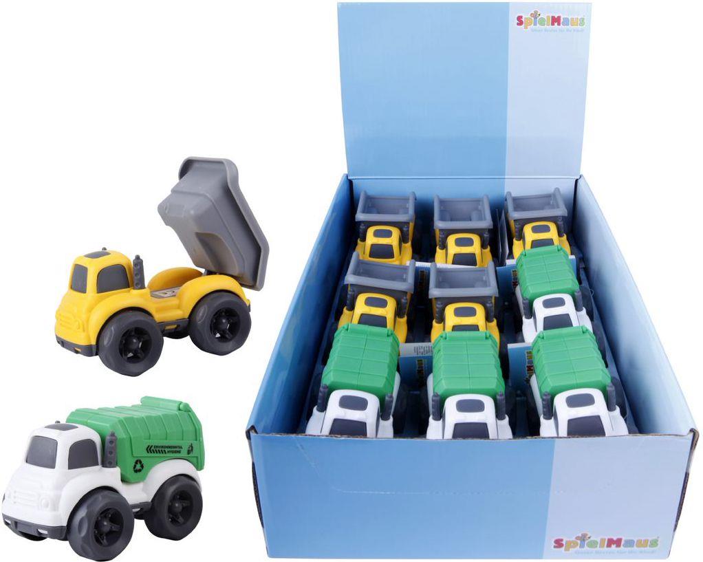 SpielMaus Baby Baufahrzeuge, 2-fach sortiert im Display. Mit Friktion. Für Kinder ab 12 Monaten.