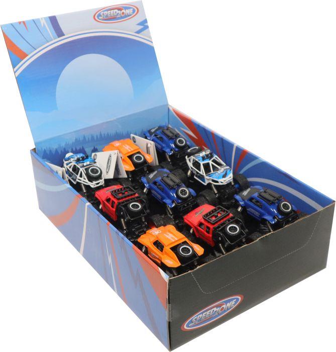 Der Speedzone D/C Big Wheel TRuck ist 4-fach sortiert in den Farben weiß, blau, orange und rot. 9 Stück im Display. Mit Rückzug. Maße ca. 7x11x5,5 cm. Für Kinder ab 3 Jahren.